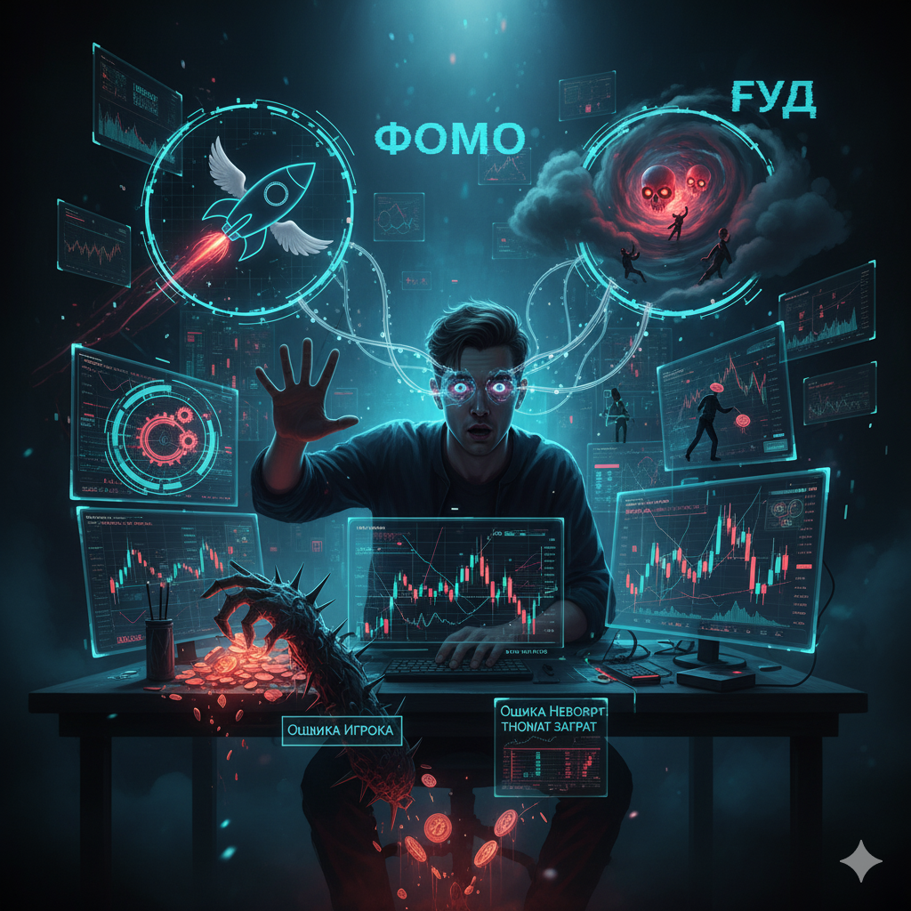 Потому что трейдинг — это на 10% стратегия и на 90% психология. А крипторынок, с его дикой волатильностью, — это как тренажер для усиления всех “багов” в вашей голове. Ваш мозг, заточенный на выживание, просто “ломается” от такого количества адреналина, жадности и страха.