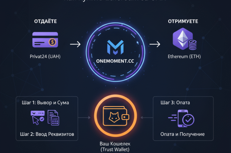 - Преимущество OneMoment.cc: Это мост. Ты отдаешь гривны с Привата/Моно (или другую валюту), и через 10-15 минут получаешь Эфир прямо на свой личный кошелек (MetaMask, Trust Wallet). Никаких посредников, никаких ожиданий. Ты сразу контролируешь свой ETH.