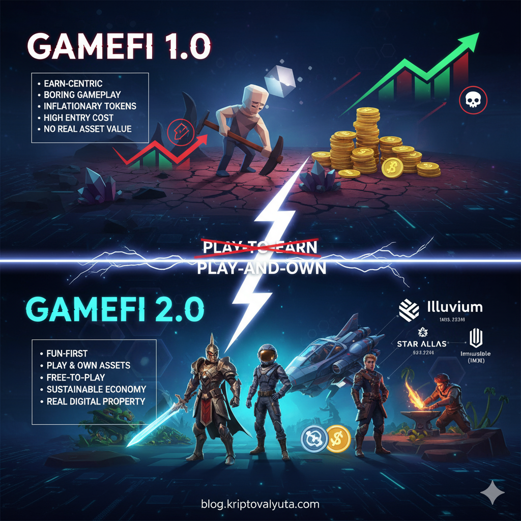 Но нарратив не умер. Он просто эволюционировал. Встречай GameFi 2.0. Новая модель называется “Play-and-Own” (Играй и Владей). И здесь все наоборот: сначала — кайф от игры, и только потом — бабки.